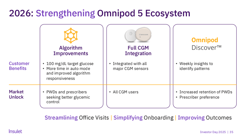 Slide from Insulet’s investor day outlining the planned 2026 improvements to the Omnipod 5 ecosystem. (Source: Insulet)